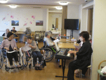 ピアノの音色に合わせて、懐かしの唱歌や歌謡曲を思いっきり